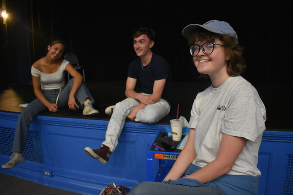 News photo — Griffin Kelly From left, Lake Placid High School seniors Lindsey Rath, Aidan Mellin and Adalyne Perryman at rehearsal for “Meddling Kids.” The play is part of the school’s tradition of producing original murder mysteries, and it’s also Perryman’s senior project with her as writer and director.