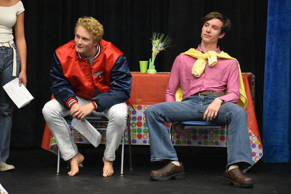 News photo — Griffin Kelly Hayden Plank (left) and Jameson Batt rehearse for “Meddling Kids” at the Lake Placid High School Thursday, Sept. 19.