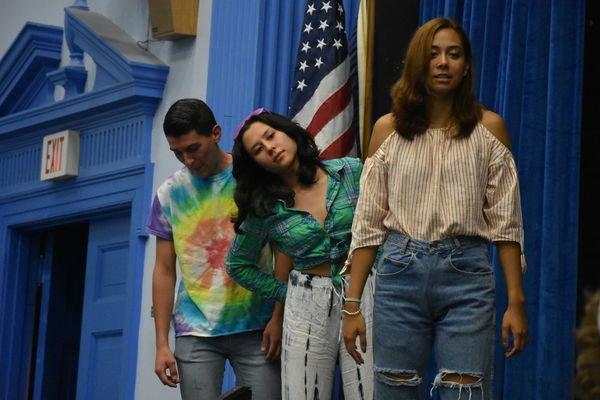 - News photo — Griffin Kelly From left, John Swinyer, Marina Gonzales and Sandra Harper rehearse for the murder mystery play “Meddling Kids” at the Lake Placid Middle-High School Sept. 19.