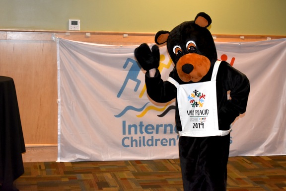 Lake Placid’s 2019 International Children’s Winter Games mascot is Bernie the Bear. (News photo — Griffin Kelly)