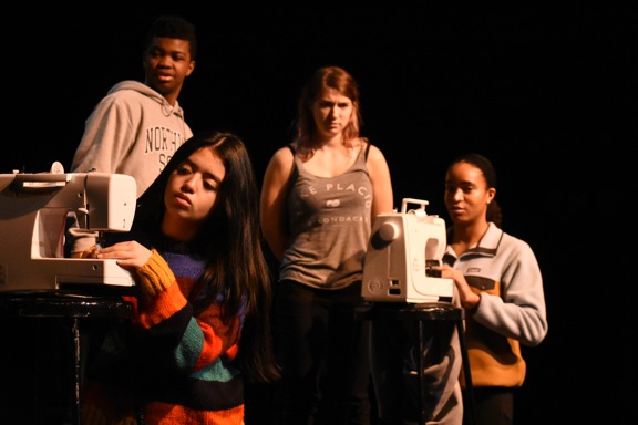 Sophomore Angelia Castillo plays Anon’s mother, Nemasani. In the play, Nemasani works in what is essentially a sweatshop, where she makes clothes but also a burial shroud for her son. The shroud is a catch-22, Castillo said. Sewing the shroud leads toward acceptance and moving on, but if she ever finishes the shroud, it’s as if Anon really is dead and never coming back.