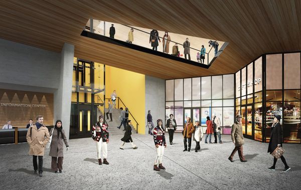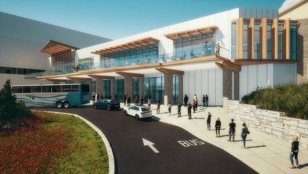 This design image shows what the exterior of an overhauled Lake Placid Olympic Center’s box office entrance is expected to look like. (Image provided by ORDA)