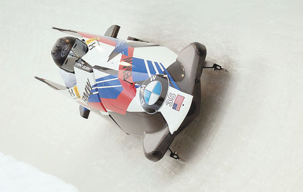 The American sled of Hunter Church and Kris Horn race to a fifth-place finish Saturday, Dec. 7 in the World Cup two-man bobsled event at the Olympic Sports Complex at Mount Van Hoevenberg. World Cup racing continues Friday, Dec. 13 through Sunday, Dec. 15 for men’s and women’s skeleton, women’s bobsled and four-man bobsled. (Provided photo — Jason Hicks-Moriarty)