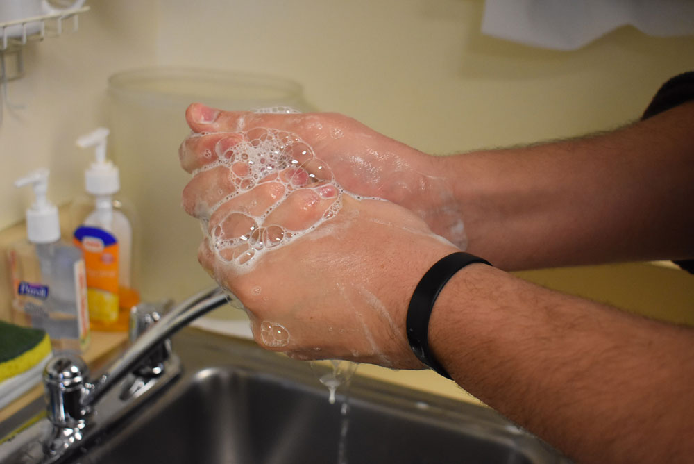 Health officials say washing your hands with soap and water is the best way to stop the spread of infectious diseases such as the COVID-19 coronavirus. Wash for 20 seconds. That’s roughly one round of singing the alphabet song or two rounds of “Happy Birthday.” (News photo — Griffin Kelly)