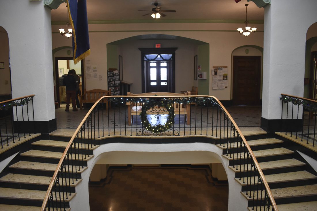 The lobby of the Harrietstown Town Hall is seen in February. (News photo)