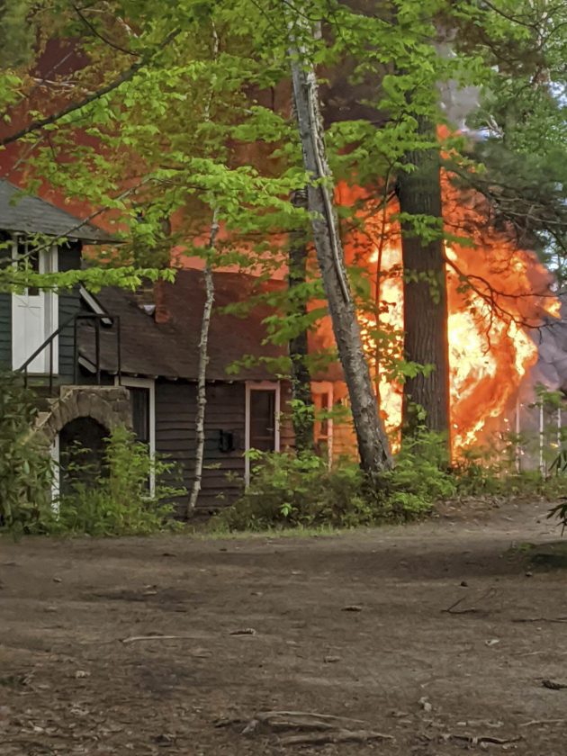Flames spread at the historic White Pine Camp on Sunday evening, June 7. (Provided photo — Amy Fisher Quinn)