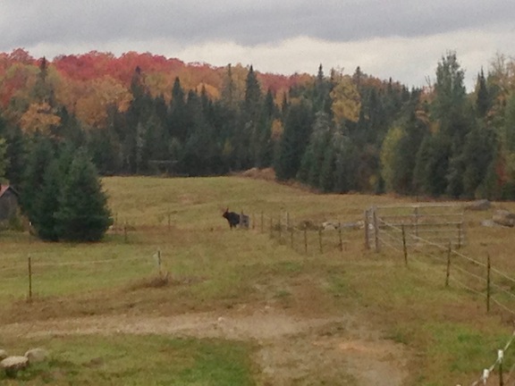“I have seen moose tracks on the trails at Van Ho,” she wrote. “About fifteen years ago, a friend of ours hit a bull moose (more accurately, was hit by a bull moose) just up the road, on 73 between our farm and Cascade Ski Center. Her car was totaled and she was lucky to escape with her life. That year there were several moose around this neighborhood.”