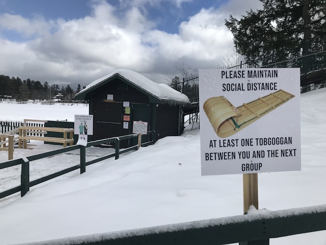- COVID-19 precautions are in place at the toboggan chute. (News photo — Andy Flynn)
