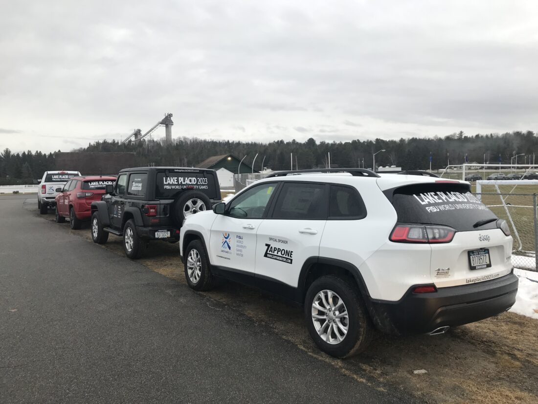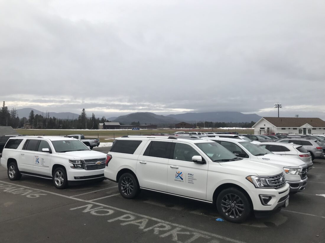 More than 70 vehicles were parked at the Show Grounds earlier this week, some with Lake Placid 2023 logos on the doors, and they will be used for officials during the Games.