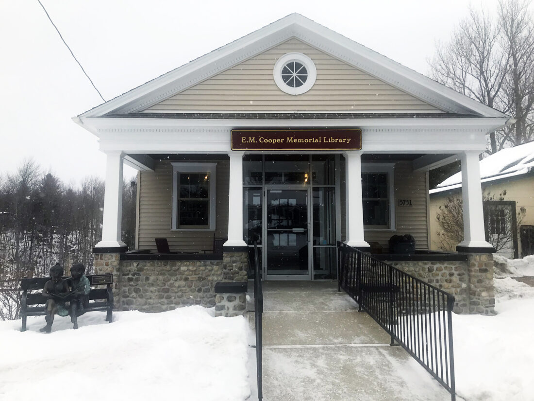 The library’s beginnings date to World War I. Ellison Minor Cooper, born in Wilmington on July 15, 1854, had left this area and become a successful businessman in Philadelphia, Pennsylvania. Near the end of his life, he created the library to leave a legacy, along with a substantial bequest in his will to support the library. He was there — on Aug. 20, 1918 — when the Cooper Memorial Library Association was formed and subsequently donated between 5,000 and 6,000 books. The library was housed in the Methodist Church lower level before the current building was constructed. Cooper died in Philadelphia on Sept. 15, 1920, and the State University of New York issued a provisional charter for the library on Sept. 22, 1921. The building was completed in 1934 on the site of one of the former sawmills, according to the Wilmington Historical Society’s historic walking tour.