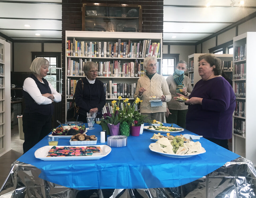 To say thank you, board members invited the Friends of the Library to a brunch on Tuesday, March 7. Seven of the 11 current volunteers attended: Leslie Kopec, Karen d’Avignon, Nancy Gonyea, Jane Sibalski, Sylvia Mustelier, Ellie McAvoy and Nancy Webb. Missing were Jane Peck, Pam Haselton, Clea Stagnitti and Laura Juravich.
