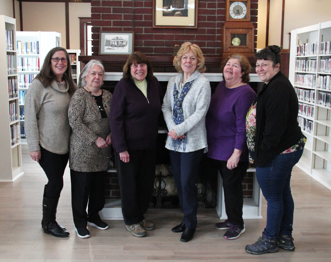 Board members of the Wilmington E. M. Cooper Memorial Public Library, posing on March 7, from left, are Kate Casler (vice president and secretary), Karen d’Avignon (library’s historian), Leslie Kopec (treasurer), Susan Hockert, Wendy Grossmann (president) and Kate Sears. (News photo — Andy Flynn)