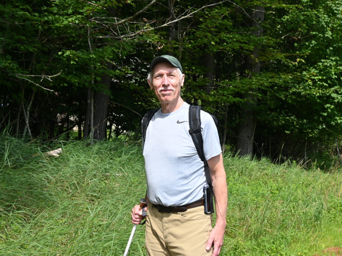- Andrew Zalewski, of Philadelphia, takes a walk on the Adirondack Rail Trail in Saranac Lake on July 25 while on vacation. (News photo — Delainey Muscato)