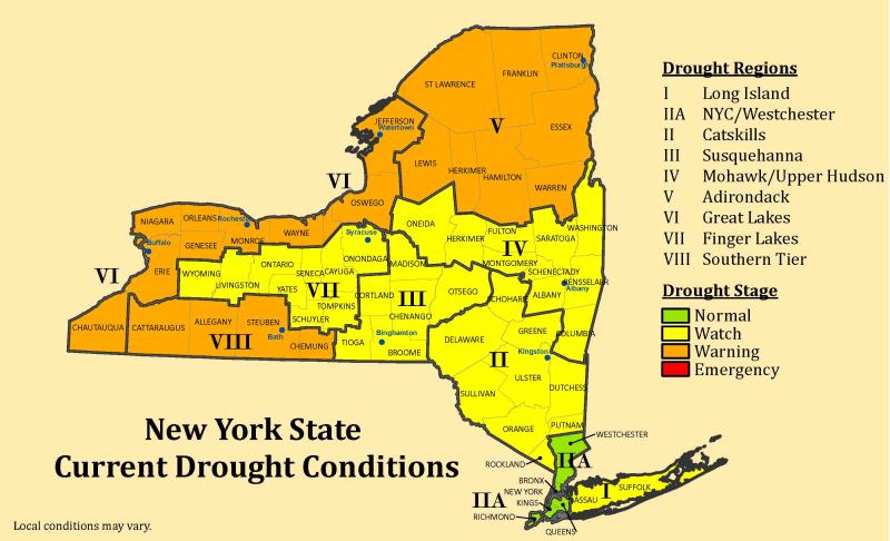 Gov. Kathy Hochul issued a temporary statewide burn ban on Thursday, Oct. 2 as a result of the drought and warm temperatures creating an increased fire risk. That will remain in place until at least Oct. 15, when it will be reevaluated, and possibly extended if there’s no improvement in the conditions then.