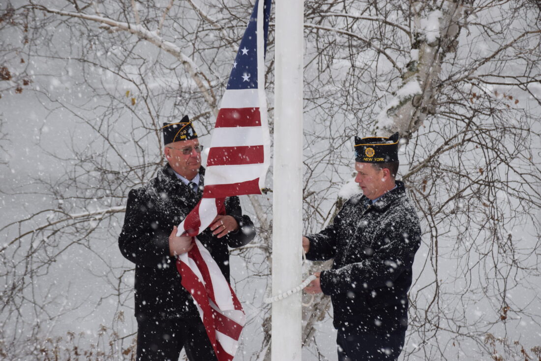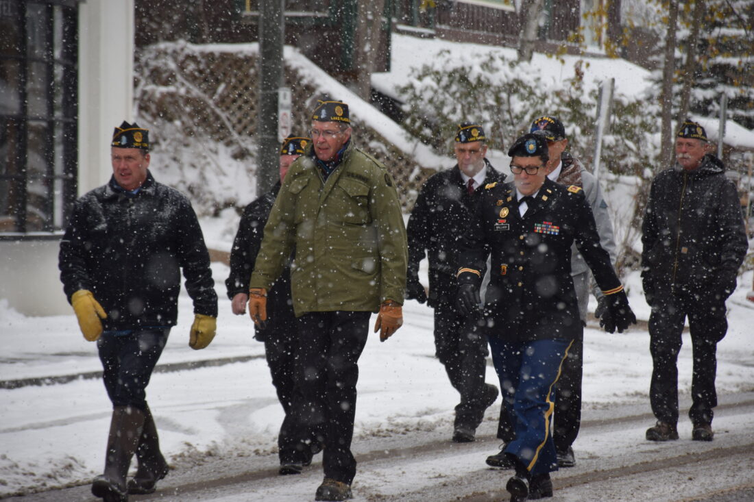 LAKE PLACID — Swirling snow and slick roads did not stop several dozen veterans, family members and community members from taking part in a full morning of events commemorating Veterans Day.