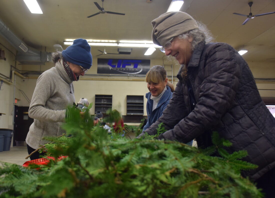 An otherwise quiet hangar at the Lake Placid Airport came bustling to life and transformed into a methodical assembly line on Wednesday, Nov. 19, as more than a dozen members of the Lake Placid Garden Club worked throughout the day to assemble more than 100 swags soon to dot Lake Placid for the holiday season.