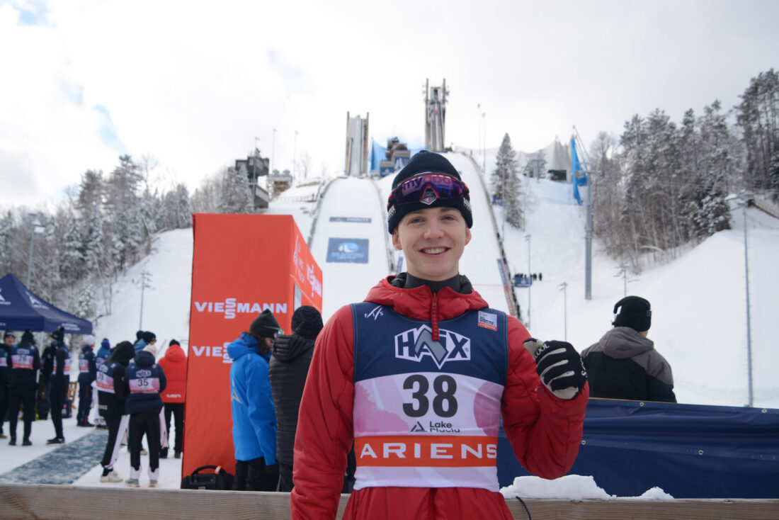 Lake Placid’s Tate Frantz poses at the Olympic Jumping Complex in Lake Placid in February 2025 after completing his second jump in the men’s FIS Ski Jumping World Cup. (News photo — Parker O’Brien)