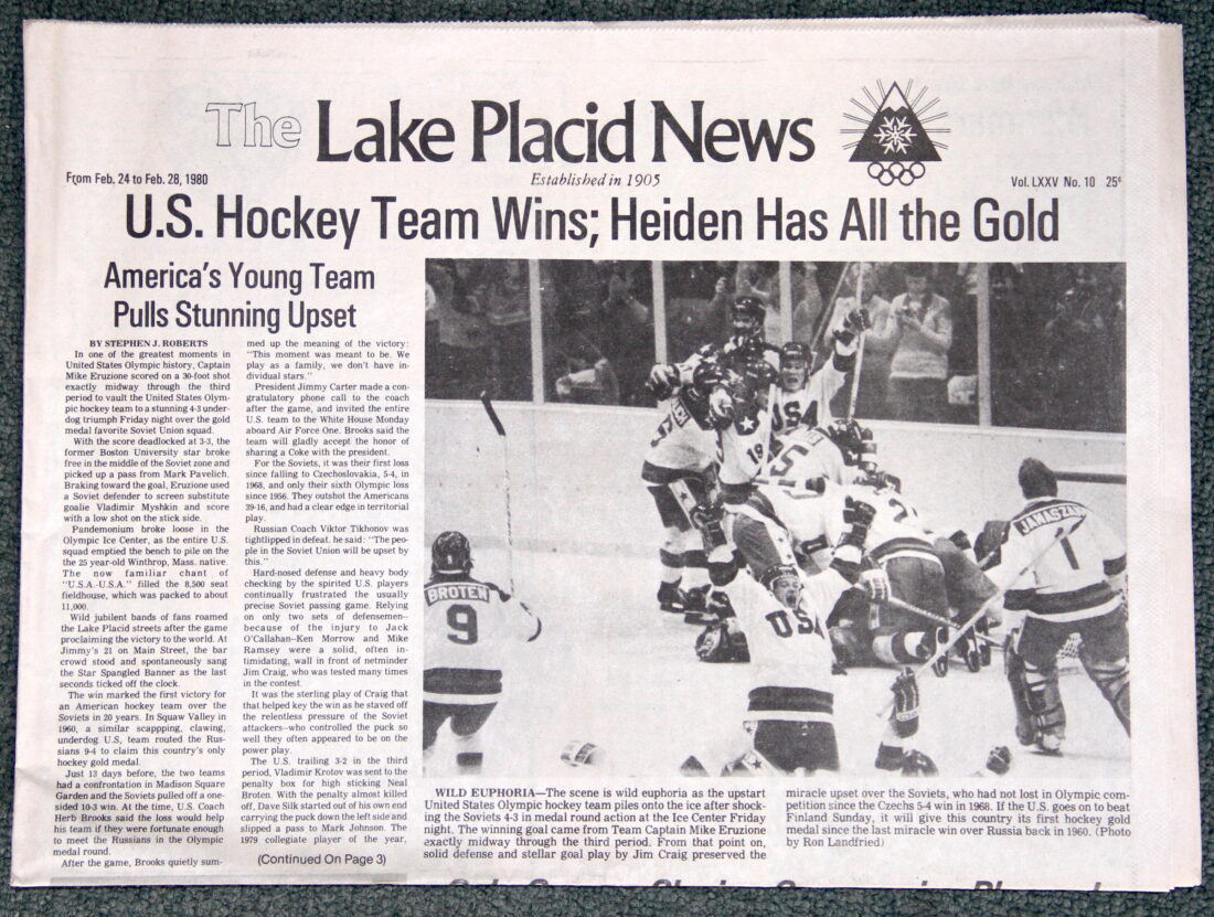 “It doesn’t seem that long ago, boy, time goes by quick,” he said, adding that the game Sunday was action-packed. “It was fun to watch. It brought back a lot of great memories, that’s for sure. Lake Placid brings back special memories for me and I’m happy for the guys too. The Canadians played well, but we had a hot goalie. When you get two good teams like that, if you hang on like we did, you never know what can happen. It worked out well.”