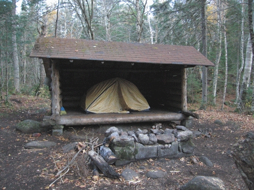 The lean-to is next to Gulf Brook at the junction of the North Trail to Hurricane Mountain and the Lost Pond Trail. It is one of two lean-tos in the primitive area. The Gulf Brook lean-to would be replaced with a campsite near where the lean-to stands now.