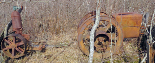 A mile to the east, just off the tracks, is further evidence of man’s presence. It’s hidden in a swamp, where I stumbled upon it while fishing one day.