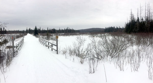 The nice thing about the Bloomingdale Bog Trail, beside the variety of distances that can be enjoyed from various entrance points, is that it’s often in excellent shape, thanks to the snowmobile groomers. So if you do encounter snowmobiles, be sure to step off the side of the trail and let them go past with a smile and a wave.