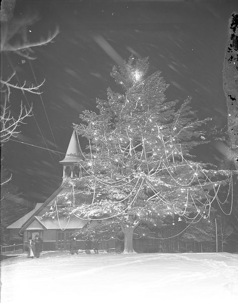 The first postcard shows a lovely winter image of a church. A large evergreen tree stands in front of the church adorned in lights and garland of sorts. Ghostly images of parishioners can be seen leaving the church building. Recently, someone stopped into the Historical Society office and offered that this church was St. Hubert’s Episcopal Church. Could this be true?