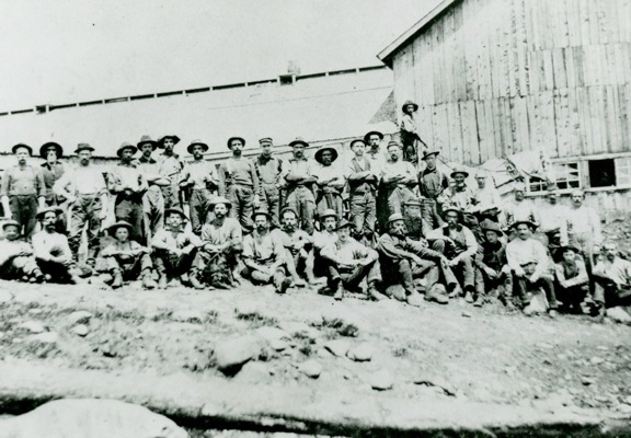 Tannery workers at the Rice Emery Company in Griffin, New York. The superintendent is Miles E. Darby, sixth from the right in the front row. Circa 1880s. Photo originally from Frank Girard. Courtesy of the Hamilton County Historian’s Office.