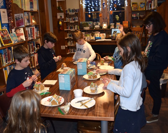 The Adventure Club works on gingerbread houses. Shown are Jesse and Elijah Carlson, Maxi Zayonc and Marella Kandic. (Provided photo)