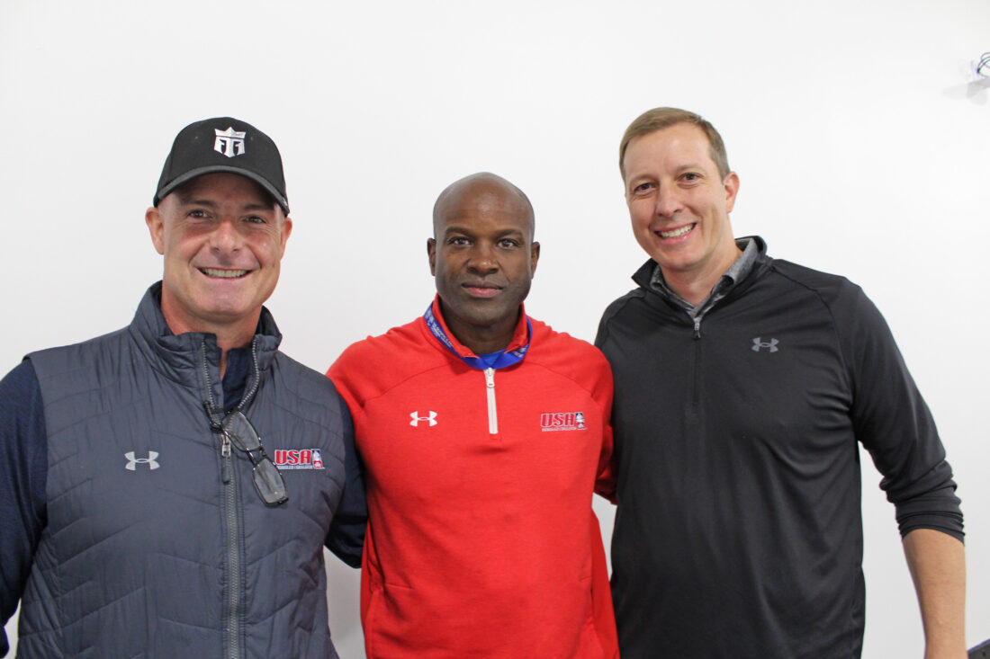 U.S. Bobsled head coach Mike Kohn, push coach Garrett Hines, and USA Bobsled and Skeleton CEO Aron McGuire. (Provided photo — Naj Wikoff)