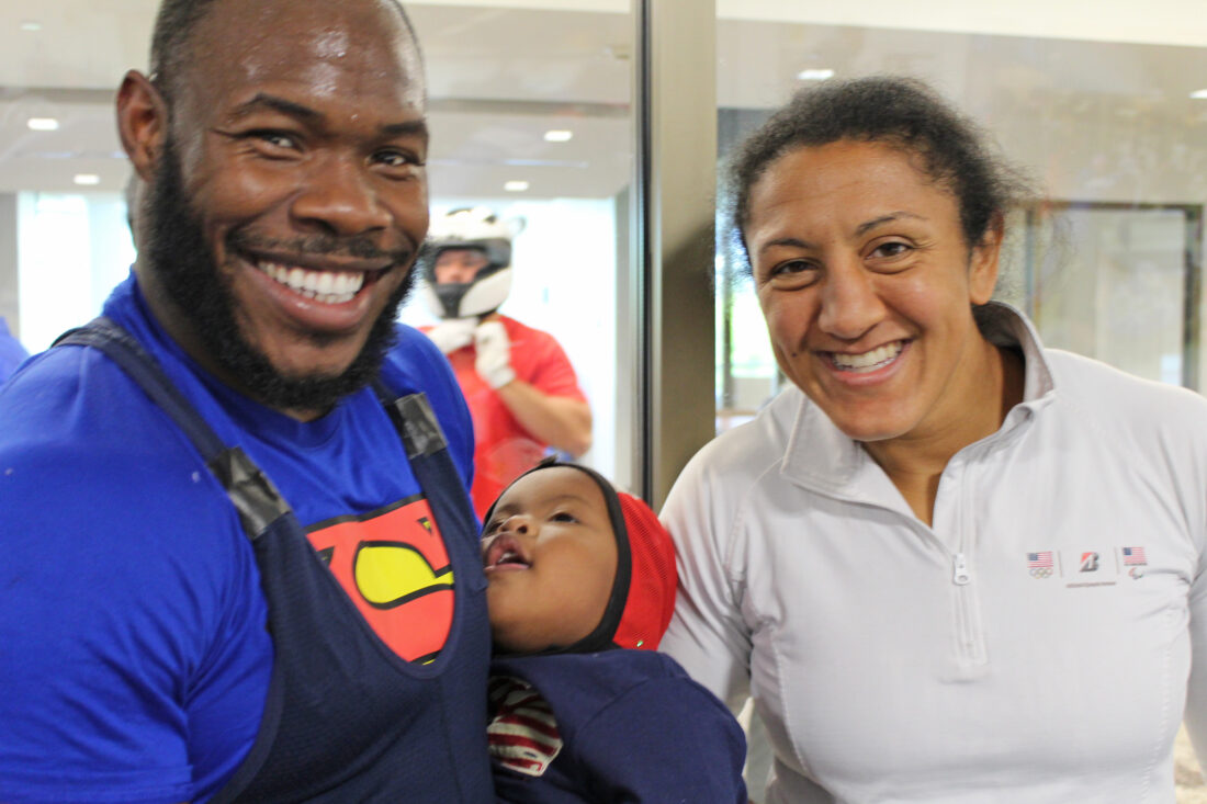 The fasted couple on ice was Elana Meyers Taylor, who finished first in the women’s driver push, and her husband Nicholas, who took eighth out of 24 in the men’s push. Nicolas credits holding their son as a great way to relax between runs. Elana is pleased to have done well, but her mind is focused on the challenge ahead.
