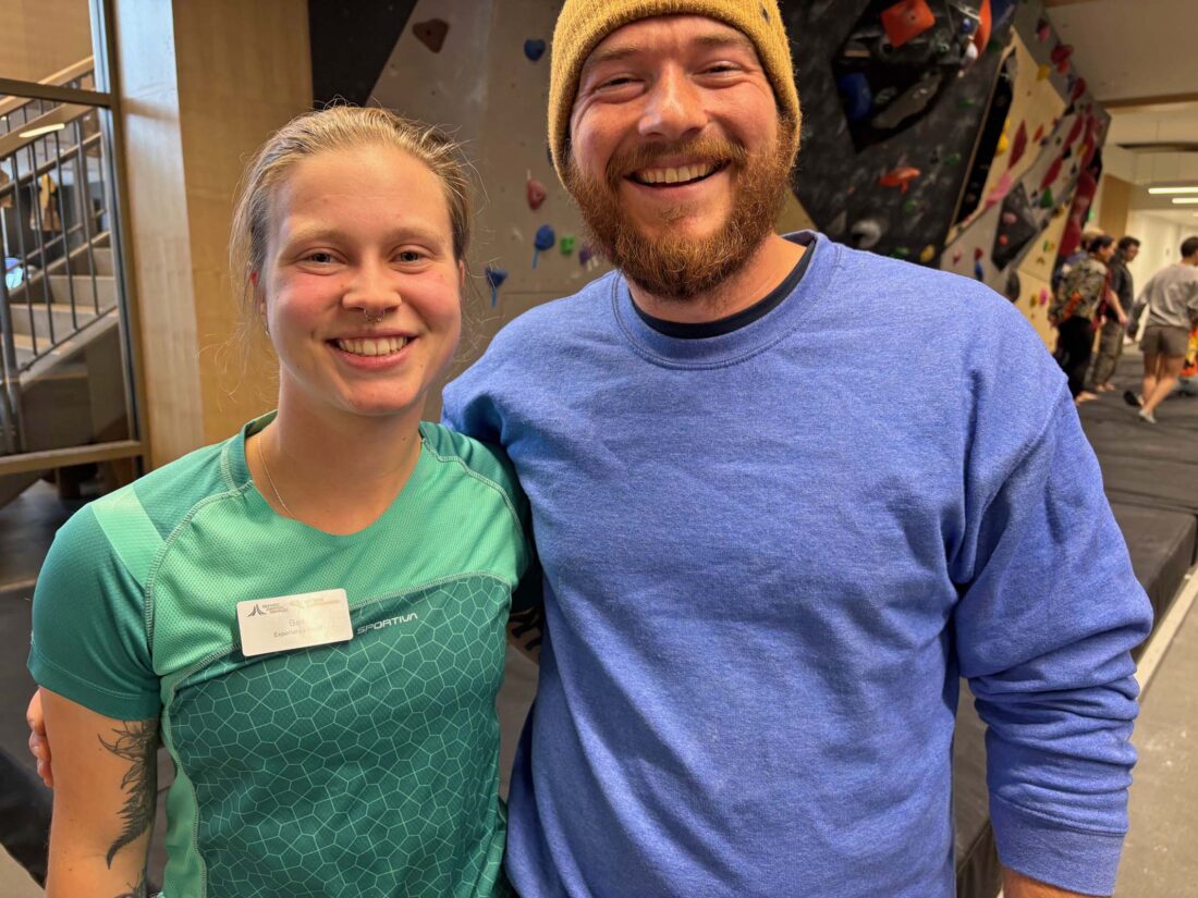 Instructor Bech Mills and climbing wall supervisor Jake Handerhan (Provided photo — Naj Wikoff)