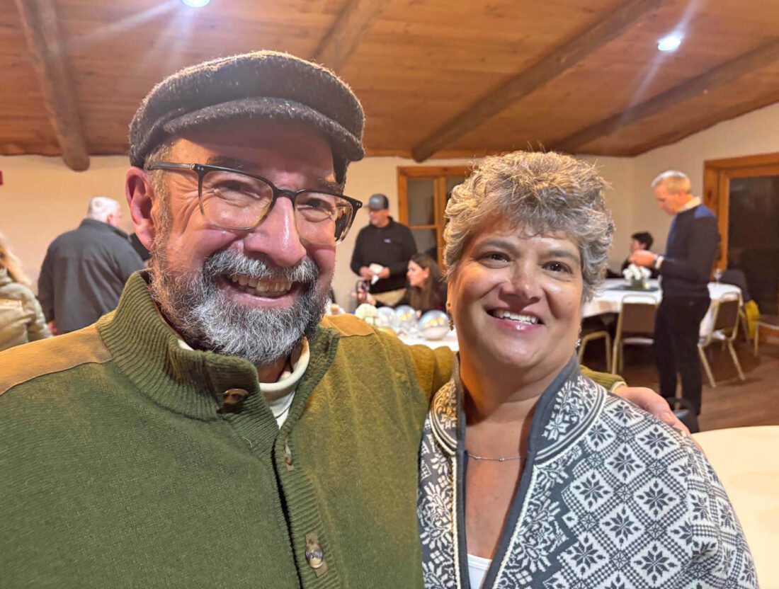 Derek and Holly Doty smile at Derek’s surprise retirement party on Friday, Dec. 5 at the Craig Wood golf course. The party was thrown in celebration of his dedication and accomplishments during his tenure as North Elba Town Supervisor. (Provided photo — Naj Waikoff)