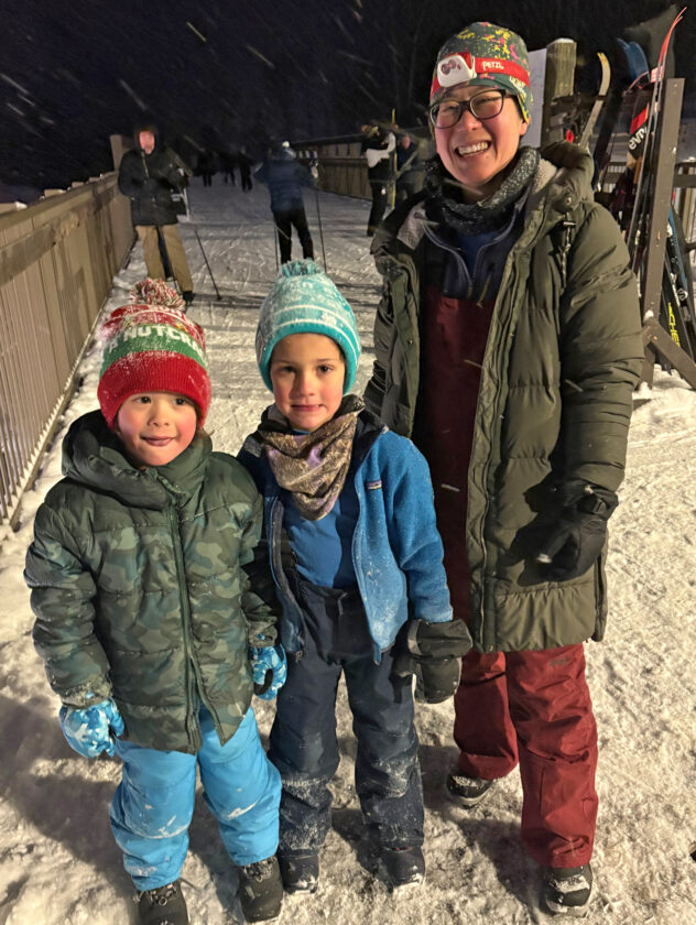 Jenna Cho was out with her 6-year-old son and his 5-year-old friend. I asked the two boys, now in the second year of cross-country skiing, what they liked about skiing, and they responded, “going fast,” clearly possible Olympians in the making.