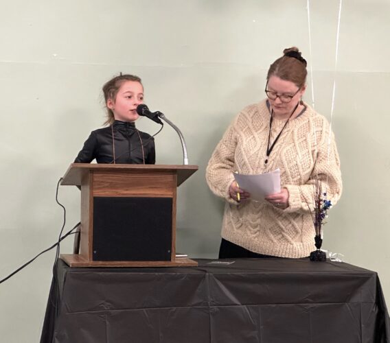 St. Bernard’s School third-grader Ryan Scollin climbed up on a step stool to reach the microphone on a tabletop podium in the cafeteria, where his teacher and principal were setting up for a spelling bee on Thursday afternoon, Feb. 1 in Saranac Lake. His job was to test the microphone, so ...