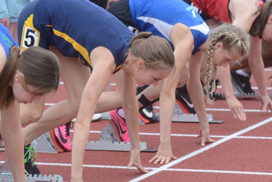 Lake Placid’s Annie Rose-McCandlish is ready to run in the Section VII track championships her hometown hosted Friday, June 11 at the North Elba Show Grounds. (News photo — Quinlan Peer)