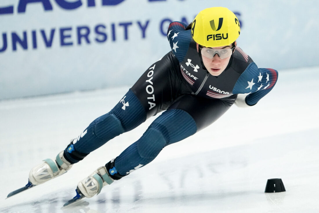 USA's Julia Letai competes during the women's short-track speedskate 3,000-meter Heat A Relay at the 2023 FISU World University Games on Jan. 21 in Lake Placid. (Photo by Kayla Breen/FISU Games)