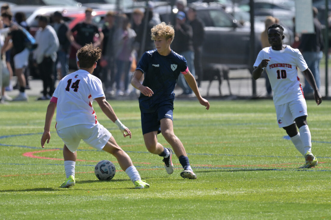 Northwood’s Noah Moodey, right, controls the ball during a game earlier this season. (Provided photo — Northwood School)