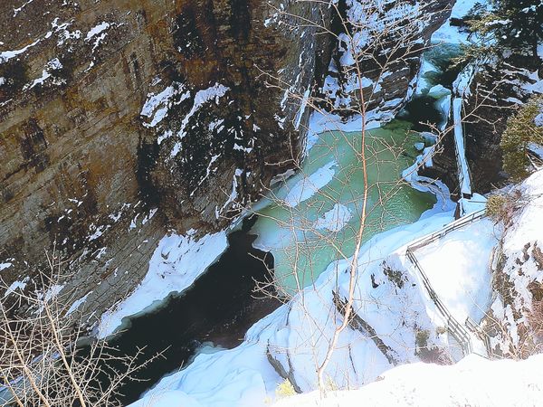 On a sunny Friday in February, our trek through the chasm and back was peaceful and serene — and eerily quiet. The normally deafening river was frozen and silent, except for the occasional cracking sound the ice made as it settled. But all it takes is a few unseasonably warm days to get the water flowing again. Fries said he hopes to continue the tours throughout the spring.